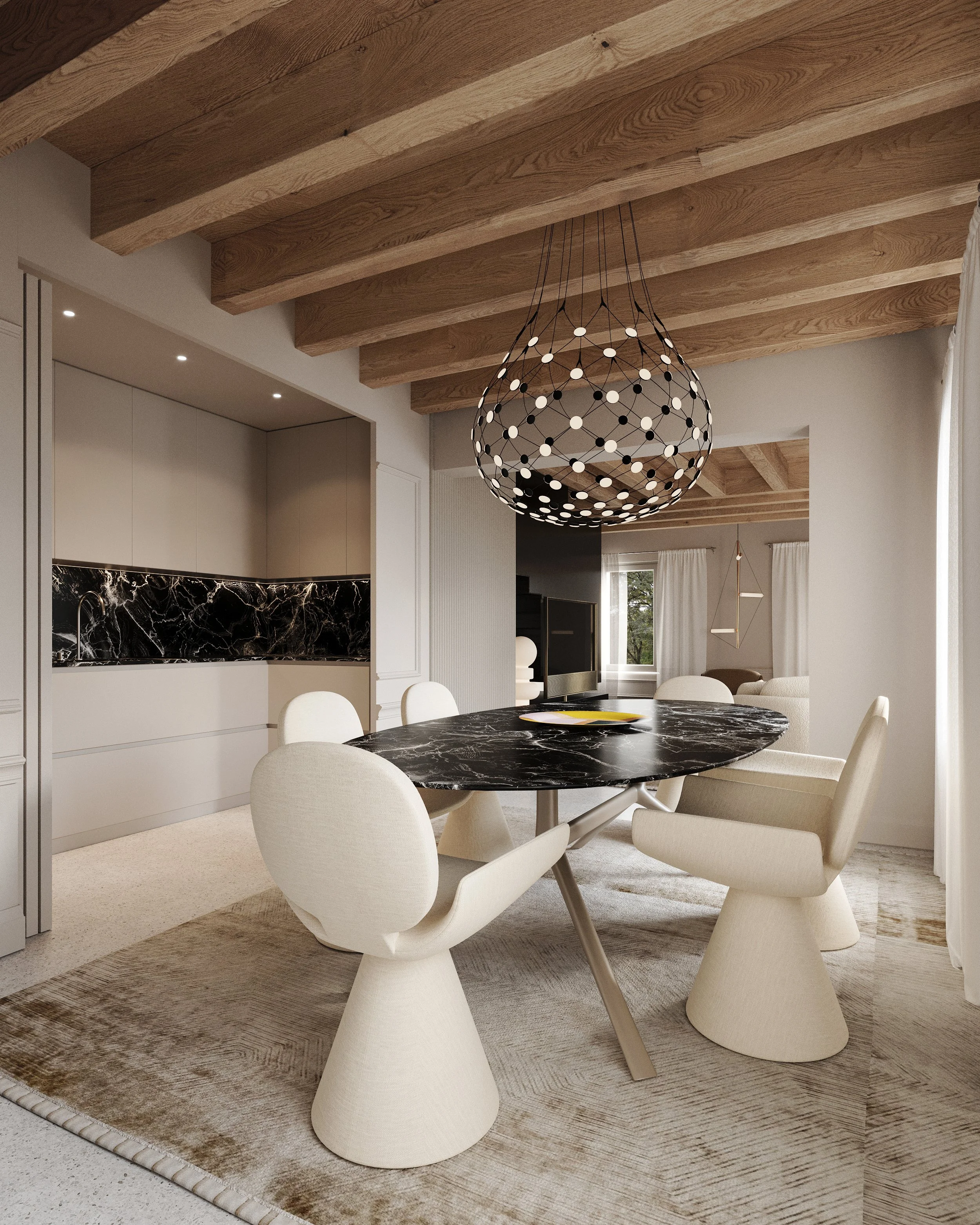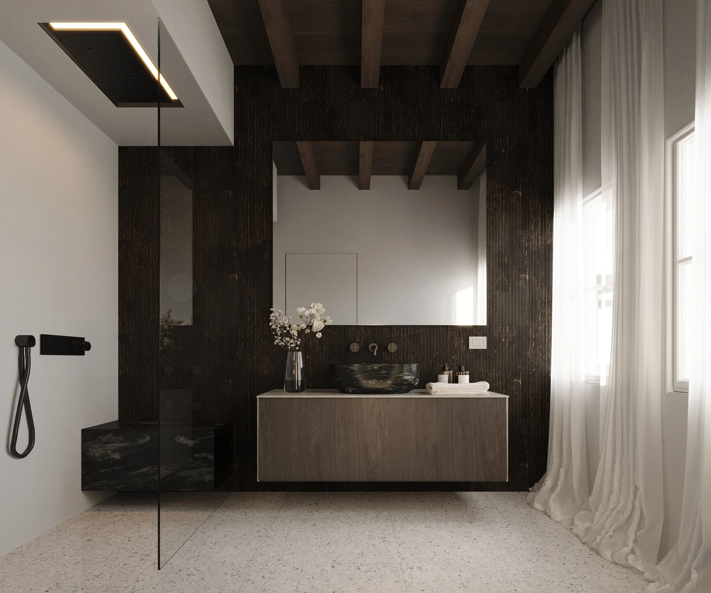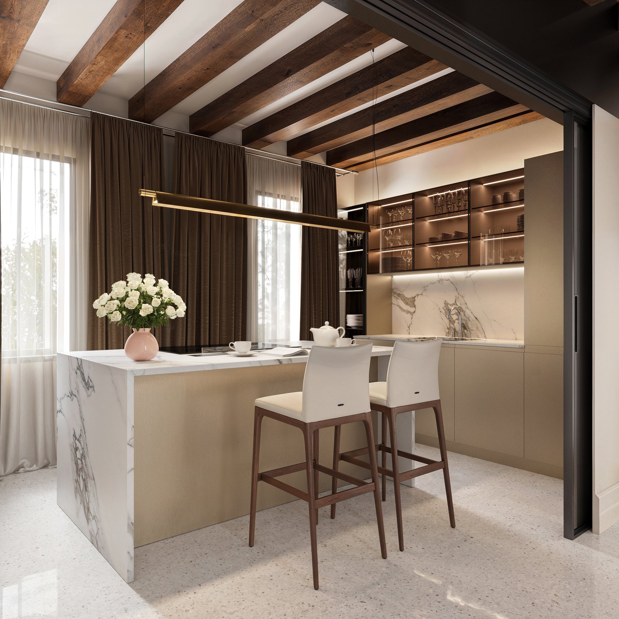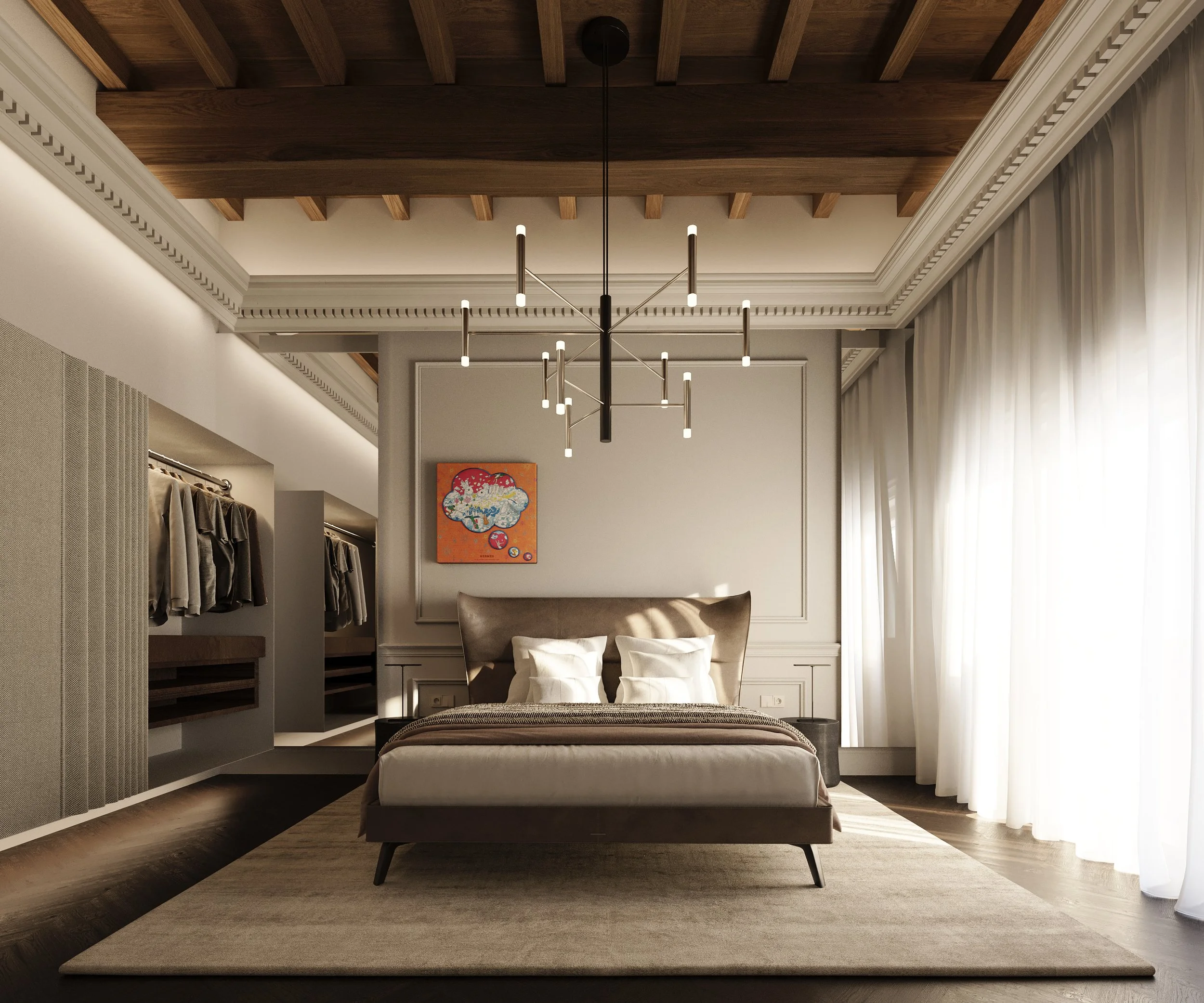 Suite padronale con bagno wellness e cabina armadio, più due camere con bagno. Incantevoli corti private e disponibilità di garage e cantina su richiesta.