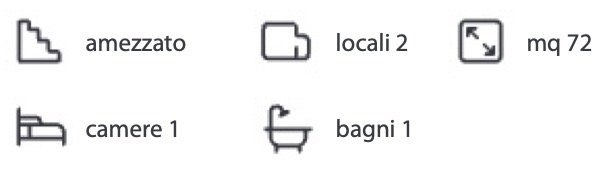 Abitazione su due livelli con zona giorno al primo piano: ingresso, soggiorno, pranzo con angolo cottura e bagno. Al piano ammezzato, zona notte con camera padronale con bagno, seconda camera e spazio servizi.